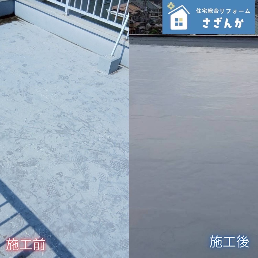 そこで、防水工事を行い表面をリフレッシュ。防水層をしっかり保護し、建物を長持ちさせる状態に仕上げました。施工後は見た目も美しくなり、オーナー様も「安心して暮らせる」と喜ばれていました。